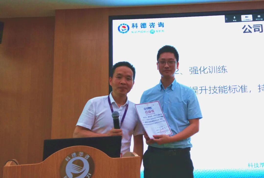 最后,集团董事长杨春生从当前与未来面临的四种状况、行业市场、公司战略三个方面进行了讲解与分析,要求各成员单位负责人要密切做到“三关注”即关注招聘、关注销售机会、关注业绩后三名”,号召员工战胜疫情影响,苦练内功,加强培训,并任命张荣华为董事长助理兼培训总监,全力配合做好业务培训工作。会上,董事长杨春生对科德全体家人在疫情过程当中,配合公司各项政策,齐心协力、不离不弃的努力工作表示了衷心的感谢!
